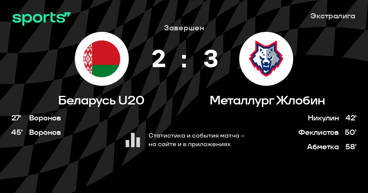 В прошедшем матче в рамках турнира Экстралига состоялась встреча команд Беларусь U20 - Металлург Жлобин в городе Минск (Беларусь) на стадионе Чижовка-Арена (вместимость - 9487)