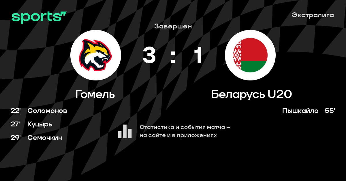 В прошедшем матче в рамках турнира Экстралига состоялась встреча команд Гомель - Беларусь U20 в городе Гомель (Беларусь) на стадионе Ледовый дворец Гомель (вместимость - 2700)