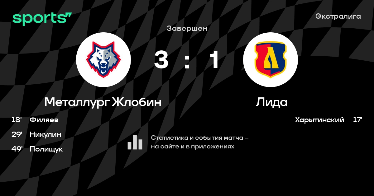 В прошедшем матче в рамках турнира Экстралига состоялась встреча команд Металлург Жлобин - Лида в городе Жлобин (Беларусь) на стадионе Ледовый дворец Металлург (вместимость - 2018)