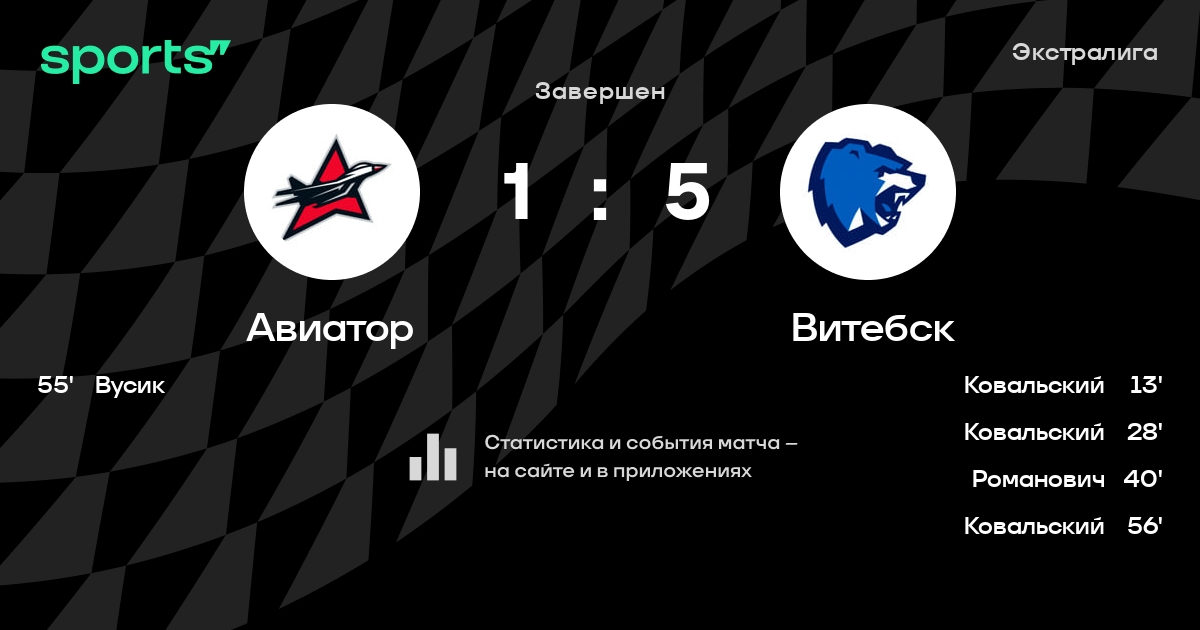 В прошедшем матче в рамках турнира Экстралига состоялась встреча команд Авиатор - Витебск в городе Барановичи (Беларусь) на стадионе Ледовый дворец спорта Барановичи (вместимость - 2100)