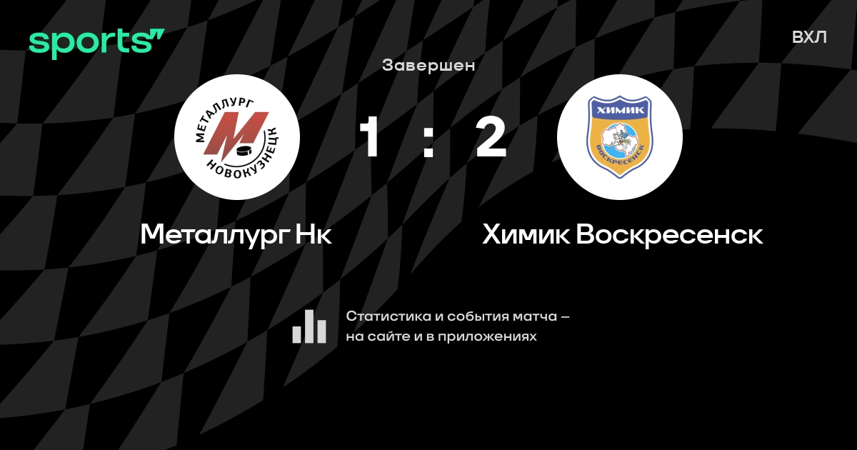 В прошедшем матче в рамках турнира ВХЛ состоялась встреча команд Металлург Нк - Химик Воскресенск