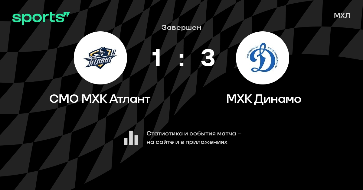 В прошедшем матче в рамках турнира МХЛ состоялась встреча команд СМО МХК Атлант - МХК Динамо со счетом 1 : 3.