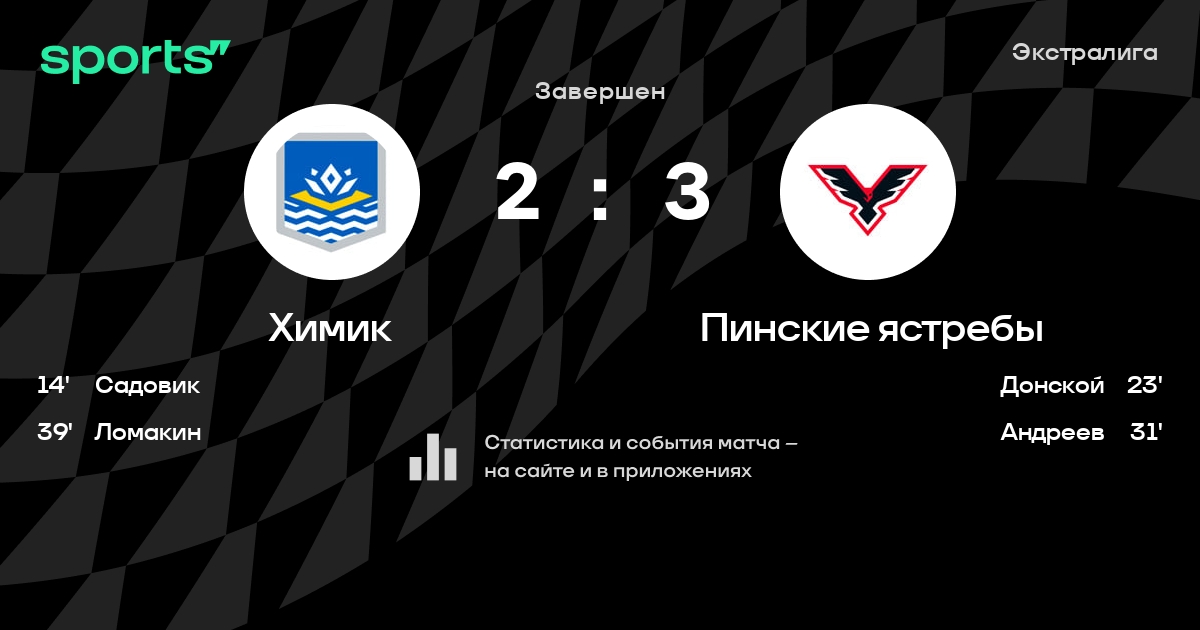 В прошедшем матче в рамках турнира Экстралига состоялась встреча команд Химик - Пинские ястребы в городе Витебск (Беларусь) на стадионе Витебский дворец спорта (вместимость - 2000)
