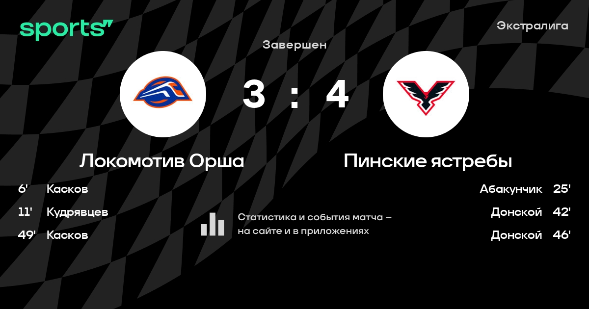 В прошедшем матче в рамках турнира Экстралига состоялась встреча команд Локомотив Орша - Пинские ястребы в городе Орша (Беларусь) на стадионе Ледовая арена Орша (вместимость - 3500)