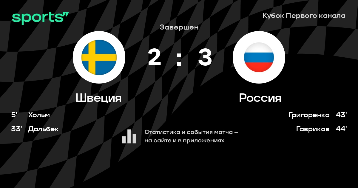 В прошедшем матче в рамках турнира Кубок Первого канала состоялась встреча команд Швеция - Россия