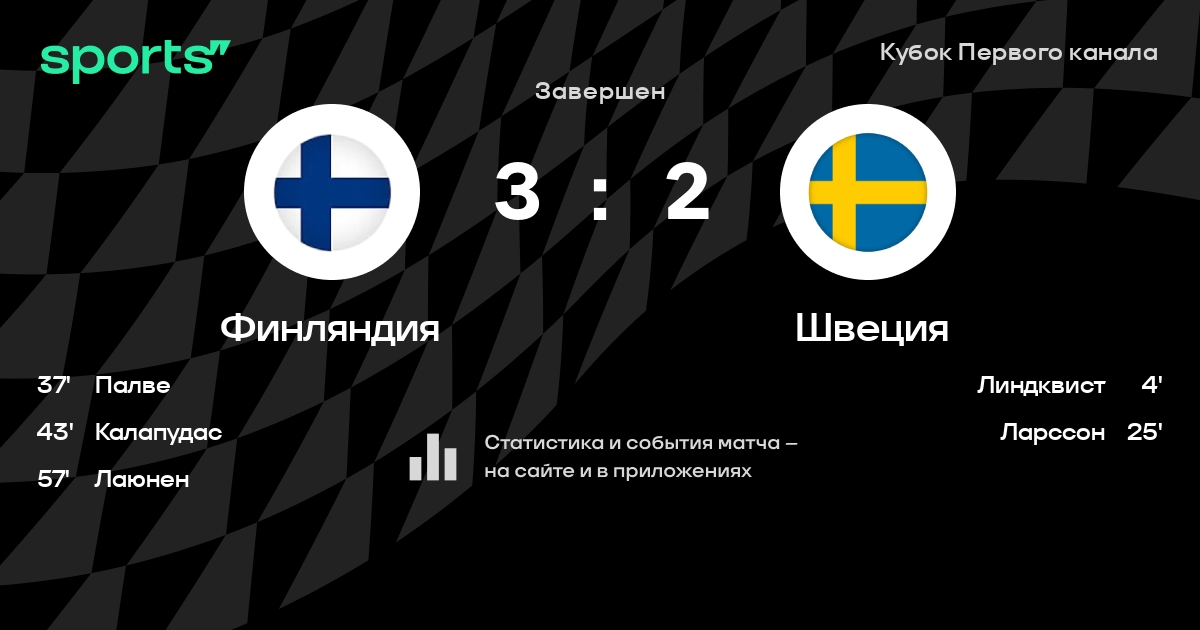 В прошедшем матче в рамках турнира Кубок Первого канала состоялась встреча команд Финляндия - Швеция в городе Москва (Россия) на стадионе ЦСКА-Арена (вместимость - 5600)