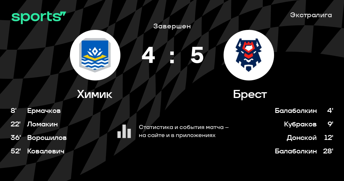 Как прошел матч, смотрите в текстовой трансляции Химик - Брест на Sports.ru