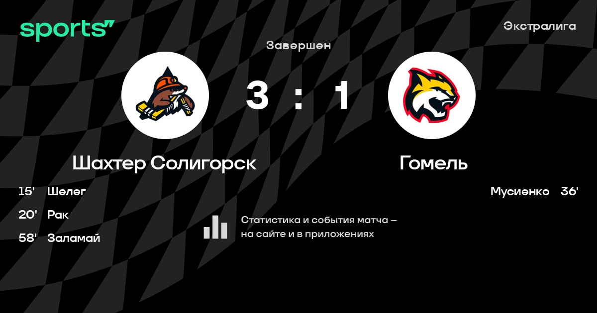 В прошедшем матче в рамках турнира Экстралига состоялась встреча команд Шахтер Солигорск - Гомель в городе Солигорск (Беларусь) на стадионе Ледовый дворец спорта Солигорск (вместимость - 1800)