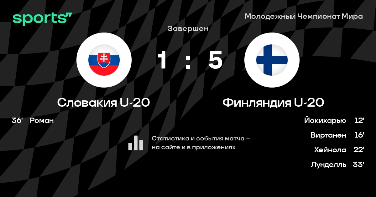 В прошедшем матче в рамках турнира Молодежный Чемпионат Мира (Групповая стадия) состоялась встреча команд Словакия U-20 - Финляндия U-20