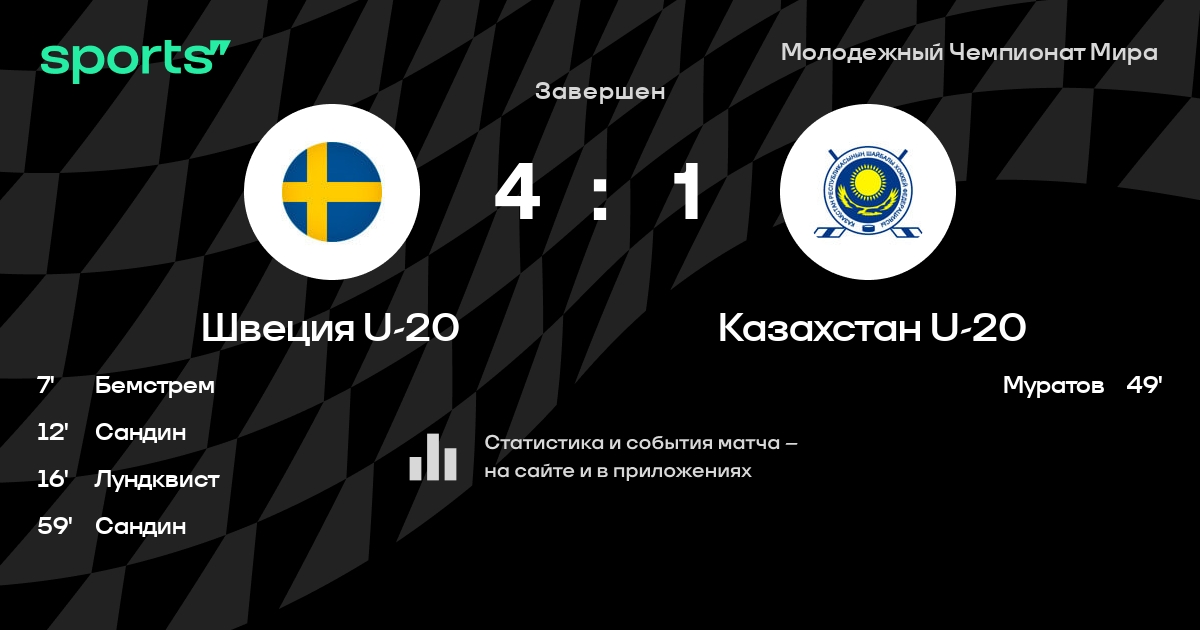 В прошедшем матче в рамках турнира Молодежный Чемпионат Мира (Групповая стадия) состоялась встреча команд Швеция U-20 - Казахстан U-20