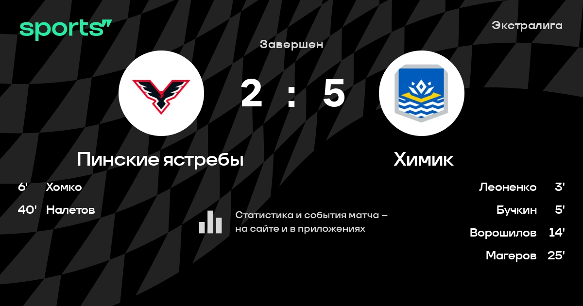 В прошедшем матче в рамках турнира Экстралига состоялась встреча команд Пинские ястребы - Химик в городе Пинск (Беларусь) на стадионе Ледовый дворец спорта Пинск (вместимость - 598)