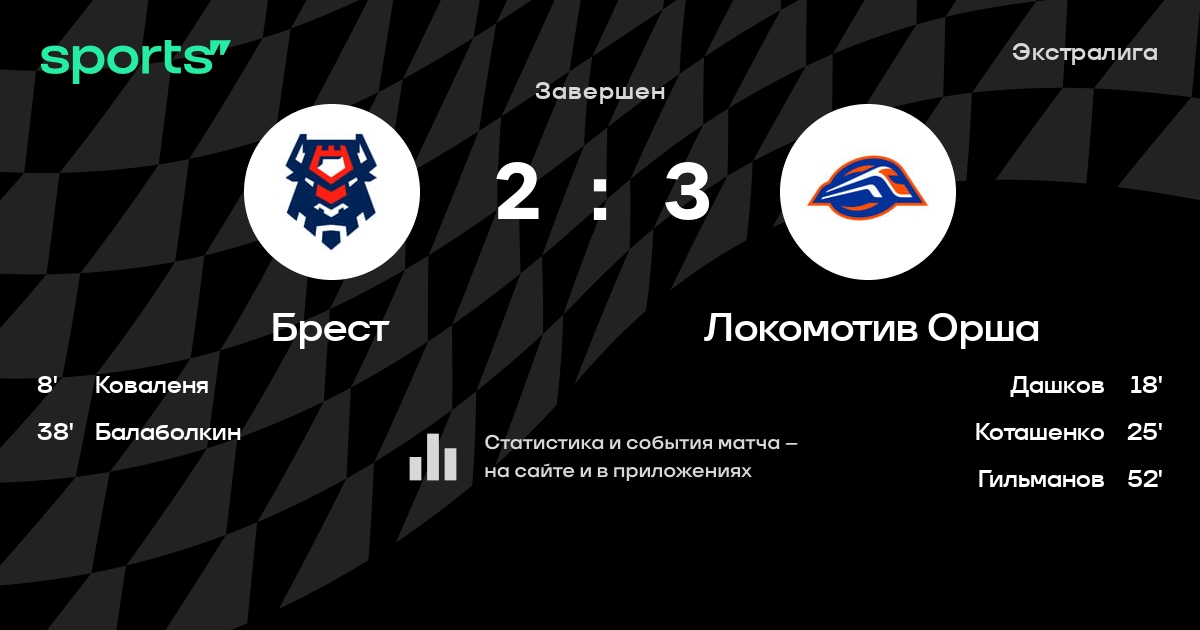 В прошедшем матче в рамках турнира Экстралига состоялась встреча команд Брест - Локомотив Орша в городе Брест (Беларусь) на стадионе Ледовый дворец Брест (вместимость - 2000)