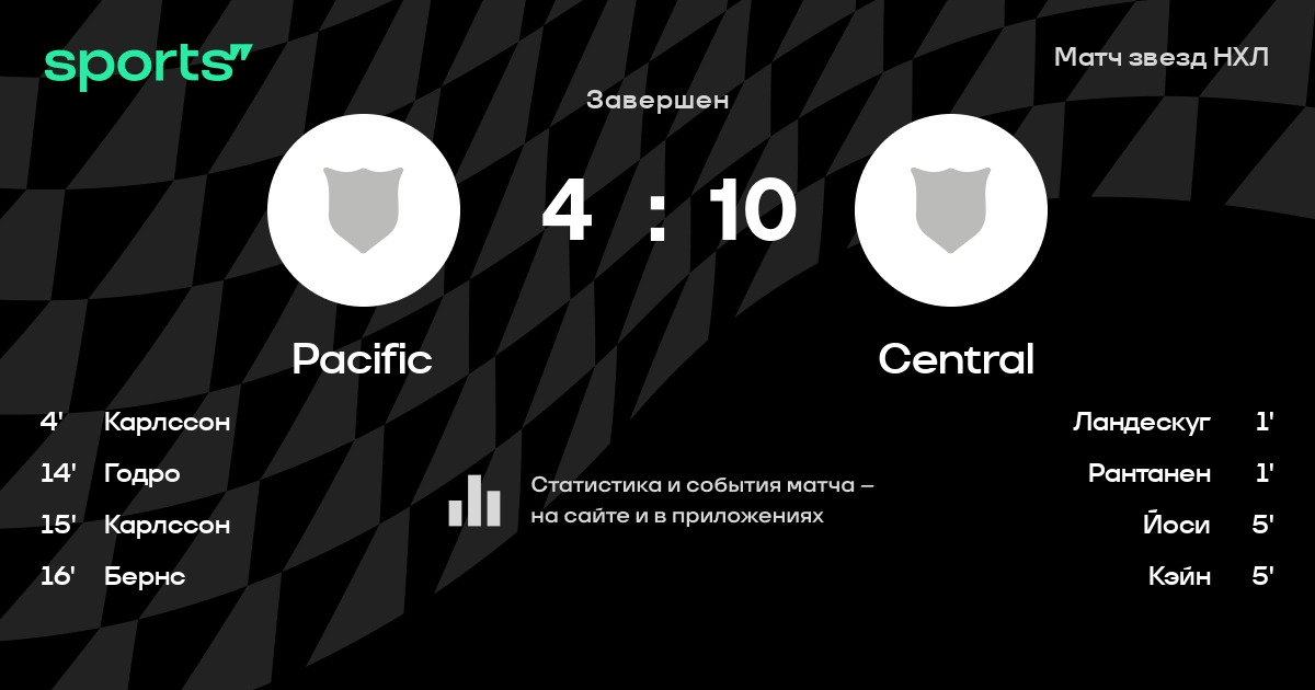 В прошедшем матче в рамках турнира Матч звезд НХЛ состоялась встреча команд Pacific - Central в городе Сан-Хосе (США) на стадионе SAP Center at San Jose (вместимость - 17496)