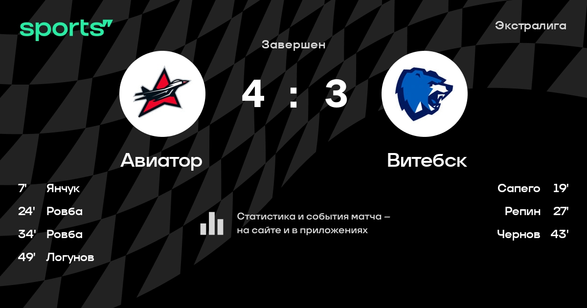 В прошедшем матче в рамках турнира Экстралига состоялась встреча команд Авиатор - Витебск в городе Барановичи (Беларусь) на стадионе Ледовый дворец спорта Барановичи (вместимость - 2100)