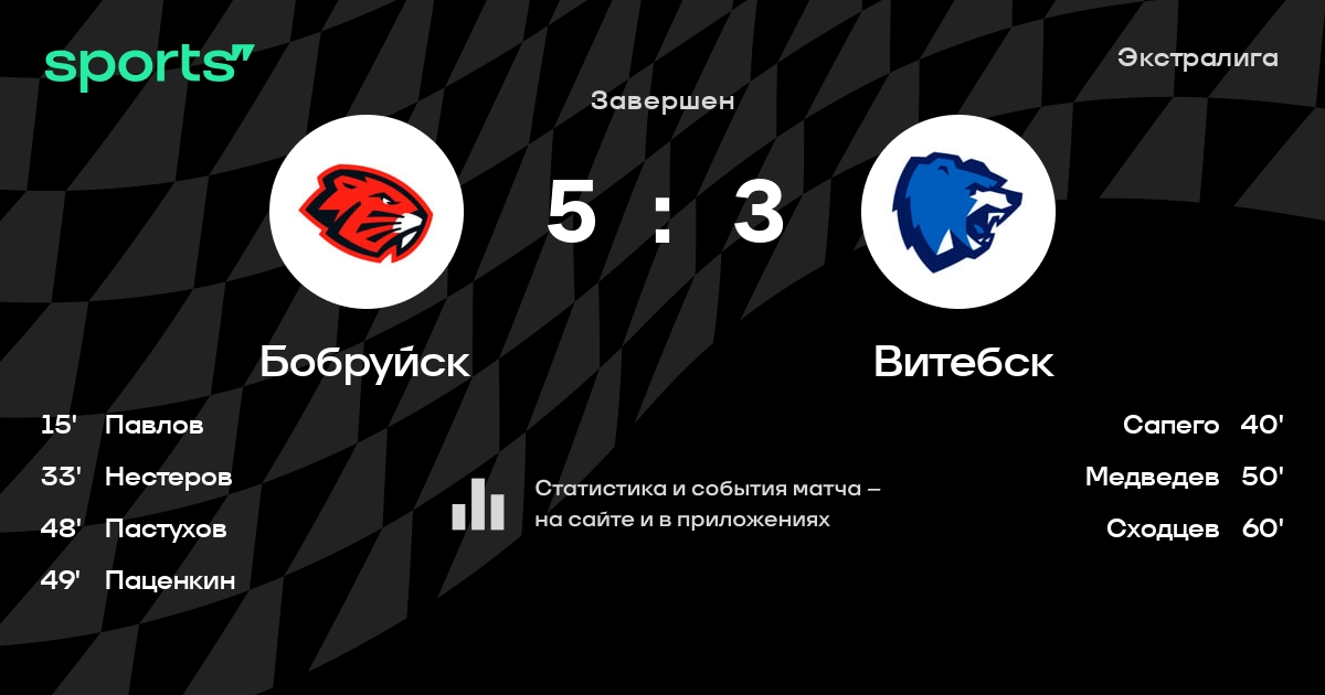 В прошедшем матче в рамках турнира Экстралига состоялась встреча команд Бобруйск - Витебск в городе Бобруйск (Беларусь) на стадионе Бобруйск-Арена (вместимость - 7191)