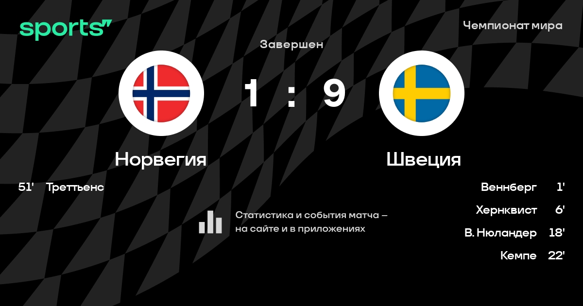 Как прошел матч, смотрите в текстовой трансляции Норвегия - Швеция на Sports.ru