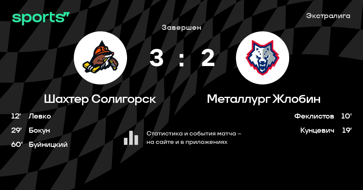 В прошедшем матче в рамках турнира Экстралига состоялась встреча команд Шахтер Солигорск - Металлург Жлобин в городе Солигорск (Беларусь) на стадионе Ледовый дворец спорта Солигорск (вместимость - 1800)