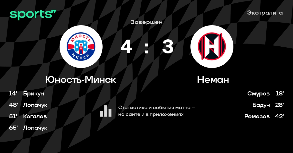 В прошедшем матче в рамках турнира Экстралига состоялась встреча команд Юность-Минск - Неман в городе Минск (Беларусь) на стадионе Чижовка-Арена (вместимость - 9487)