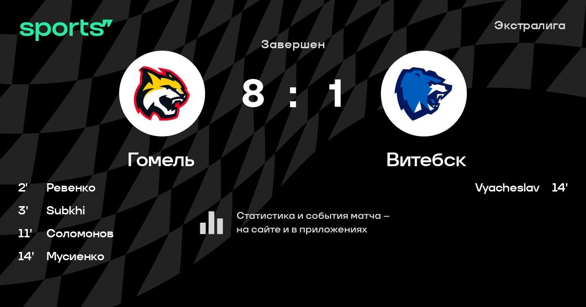 В прошедшем матче в рамках турнира Экстралига состоялась встреча команд Гомель - Витебск в городе Гомель (Беларусь) на стадионе Ледовый дворец Гомель (вместимость - 2700)