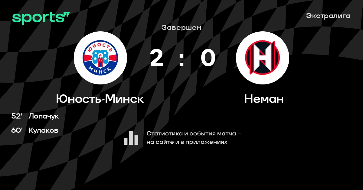 В прошедшем матче в рамках турнира Экстралига состоялась встреча команд Юность-Минск - Неман в городе Минск (Беларусь) на стадионе Чижовка-Арена (вместимость - 9487)