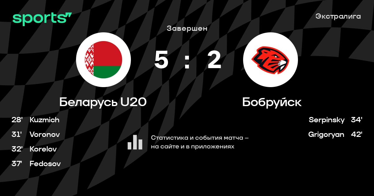 В прошедшем матче в рамках турнира Экстралига состоялась встреча команд Беларусь U20 - Бобруйск в городе Минск (Беларусь) на стадионе Чижовка-Арена (вместимость - 9487)