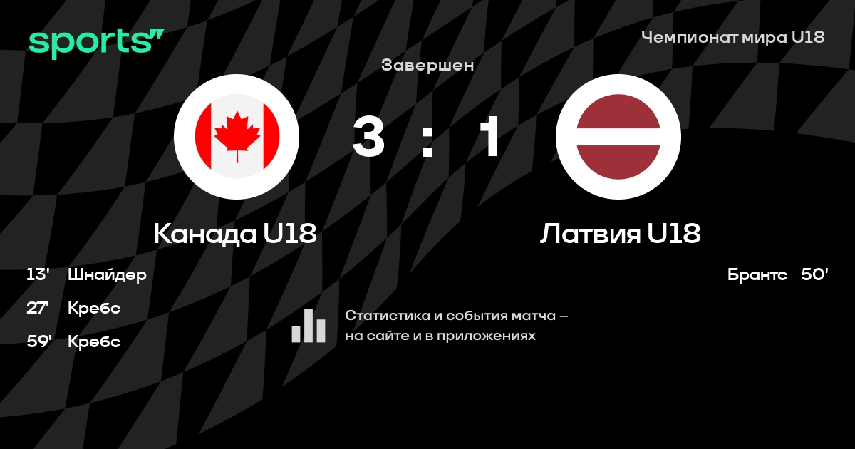 В прошедшем матче в рамках турнира Чемпионат мира U18 (Четвертьфинал) состоялась встреча команд Канада U18 - Латвия U18 в городе Umeå на стадионе A3 Arena
