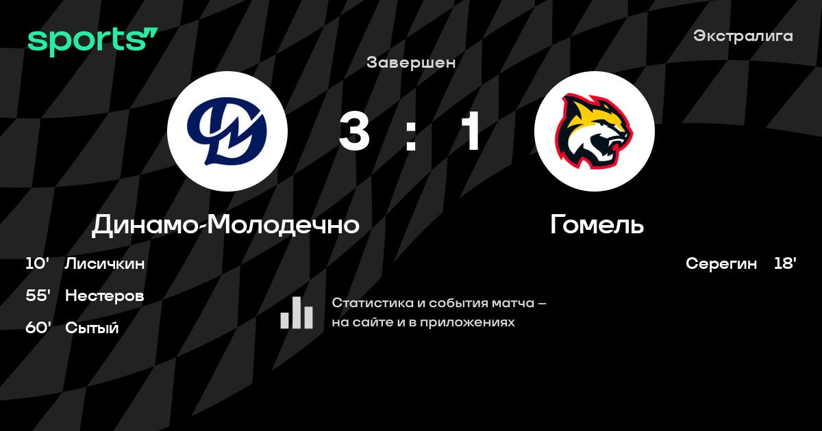 В прошедшем матче в рамках турнира Экстралига состоялась встреча команд Динамо-Молодечно - Гомель в городе Молодечно (Беларусь) на стадионе Ледовый дворец Молодечно (вместимость - 2000)