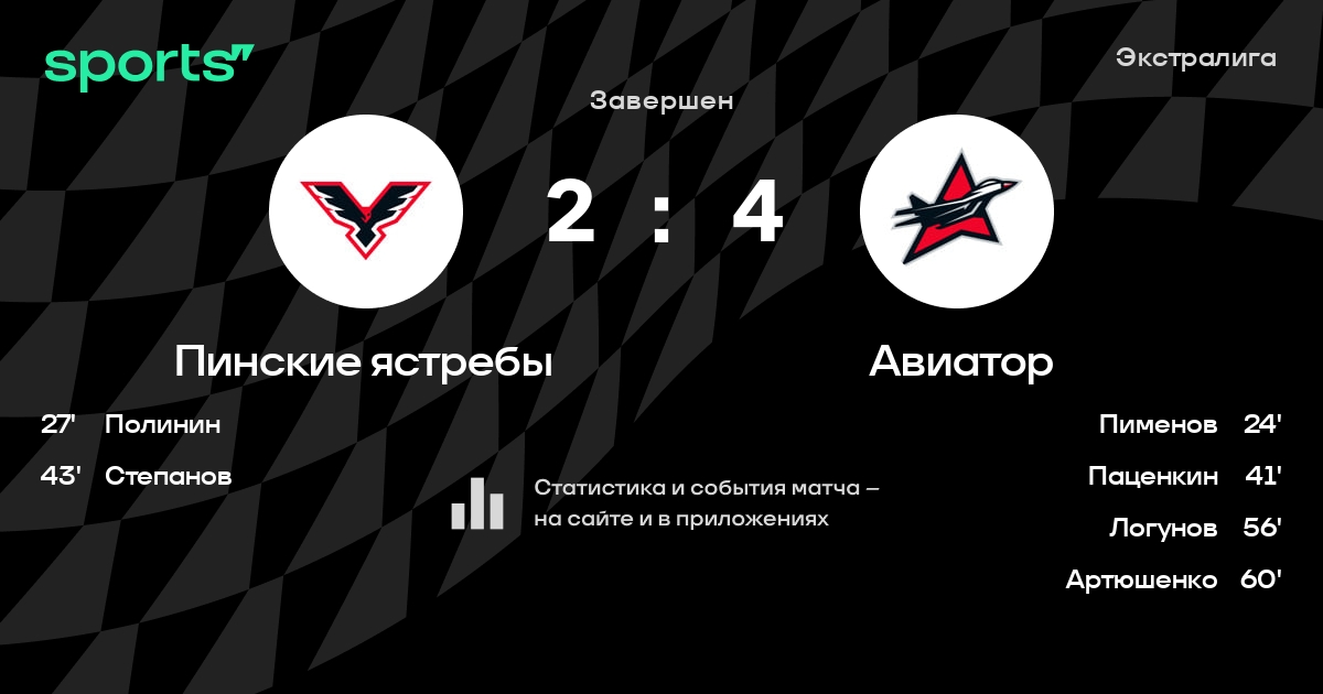 В прошедшем матче в рамках турнира Экстралига состоялась встреча команд Пинские ястребы - Авиатор в городе Пинск (Беларусь) на стадионе Ледовый дворец спорта Пинск (вместимость - 598)