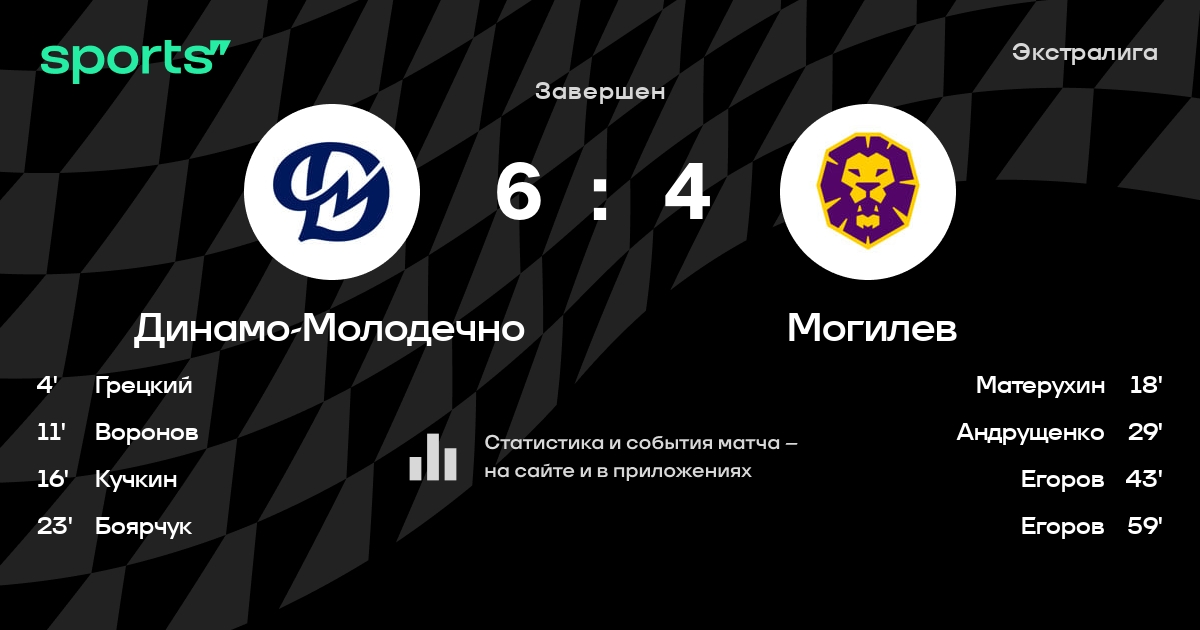 В прошедшем матче в рамках турнира Экстралига состоялась встреча команд Динамо-Молодечно - Могилев в городе Молодечно (Беларусь) на стадионе Ледовый дворец Молодечно (вместимость - 2000)