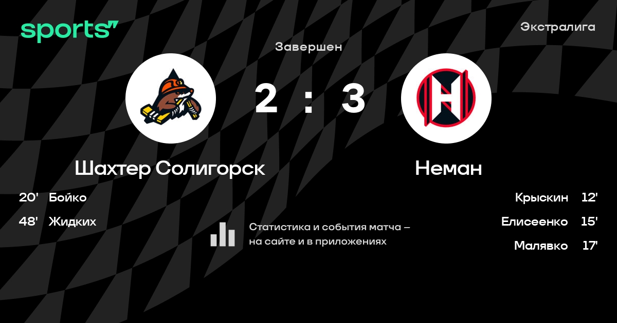В прошедшем матче в рамках турнира Экстралига состоялась встреча команд Шахтер Солигорск - Неман в городе Солигорск (Беларусь) на стадионе Ледовый дворец спорта Солигорск (вместимость - 1800)