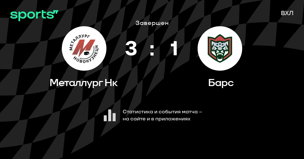 В прошедшем матче в рамках турнира ВХЛ состоялась встреча команд Металлург Нк - Барс