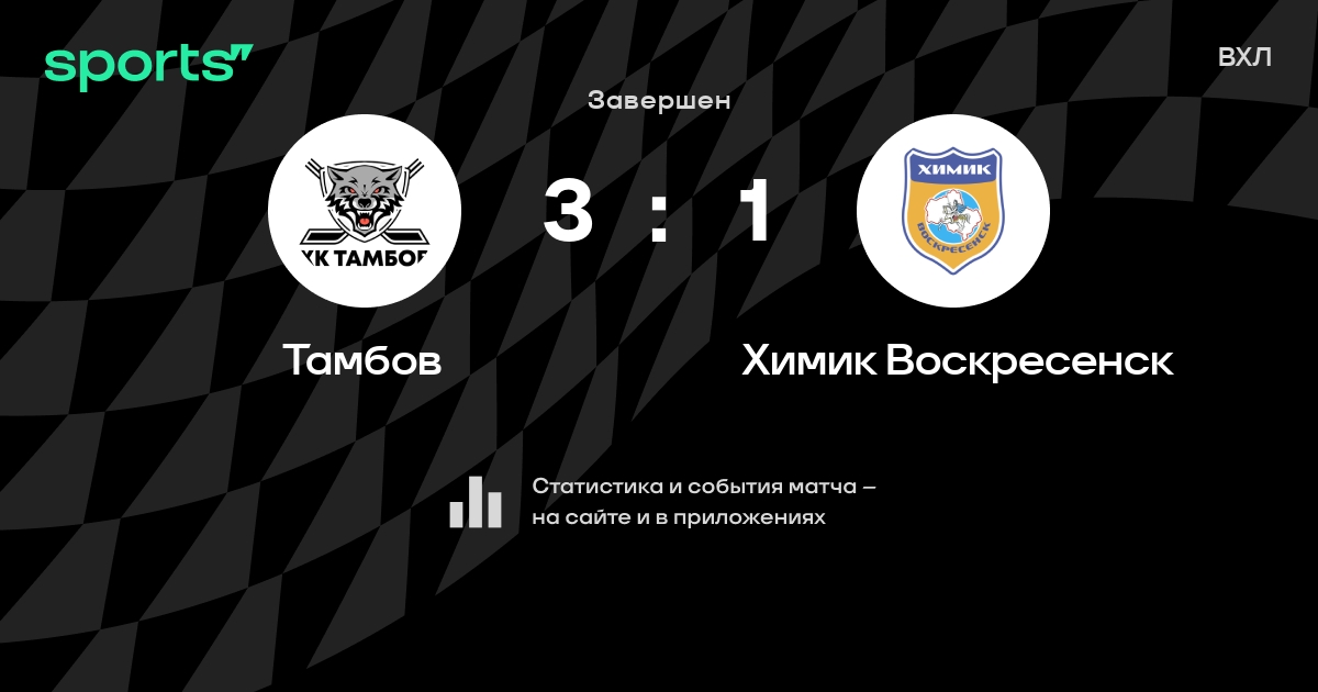В прошедшем матче в рамках турнира ВХЛ состоялась встреча команд Тамбов - Химик Воскресенск