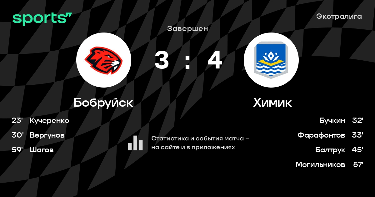 В прошедшем матче в рамках турнира Экстралига состоялась встреча команд Бобруйск - Химик в городе Бобруйск (Беларусь) на стадионе Бобруйск-Арена (вместимость - 7191)