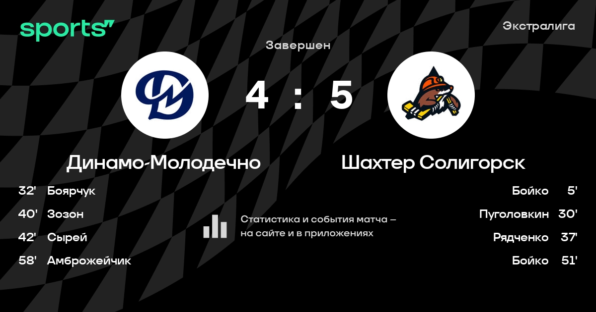 В прошедшем матче в рамках турнира Экстралига состоялась встреча команд Динамо-Молодечно - Шахтер Солигорск в городе Молодечно (Беларусь) на стадионе Ледовый дворец Молодечно (вместимость - 2000)