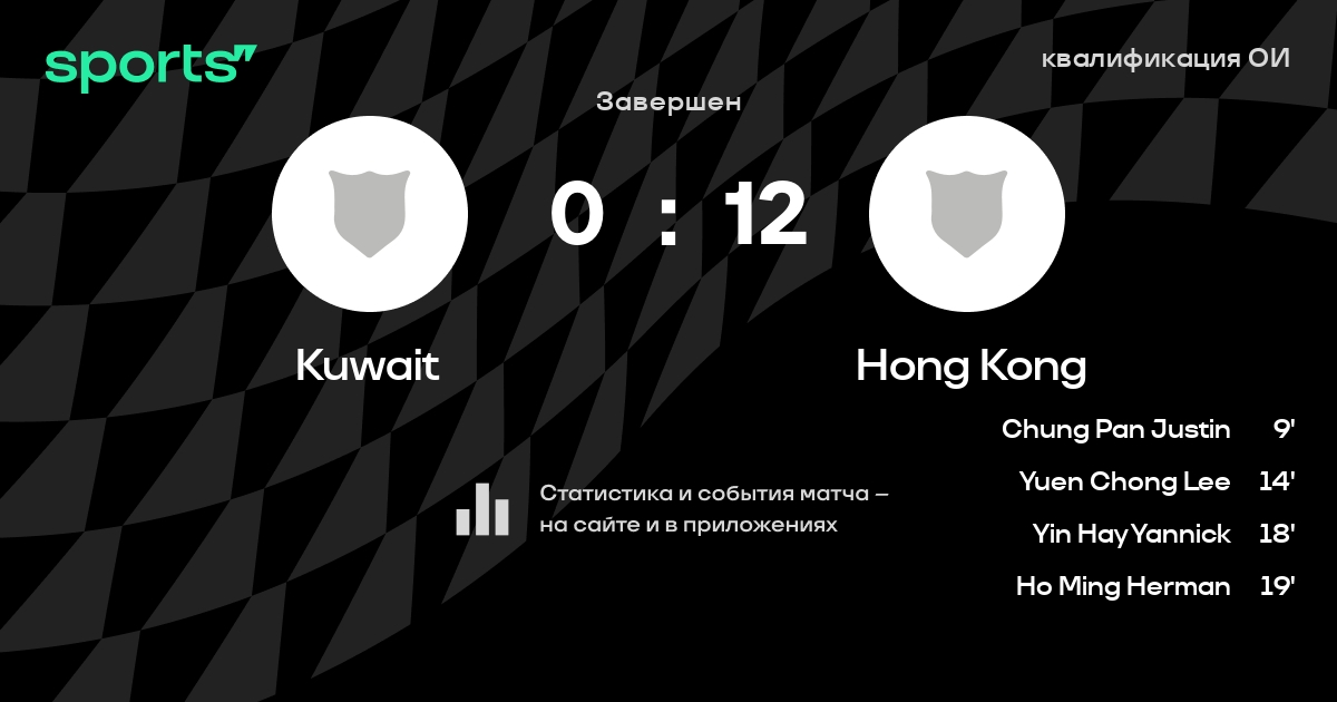 В прошедшем матче в рамках турнира квалификация ОИ состоялась встреча команд Kuwait - Hong Kong