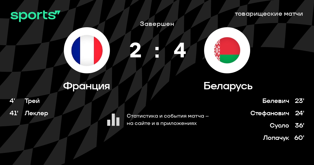 В прошедшем матче в рамках турнира товарищеские матчи состоялась встреча команд Франция - Беларусь