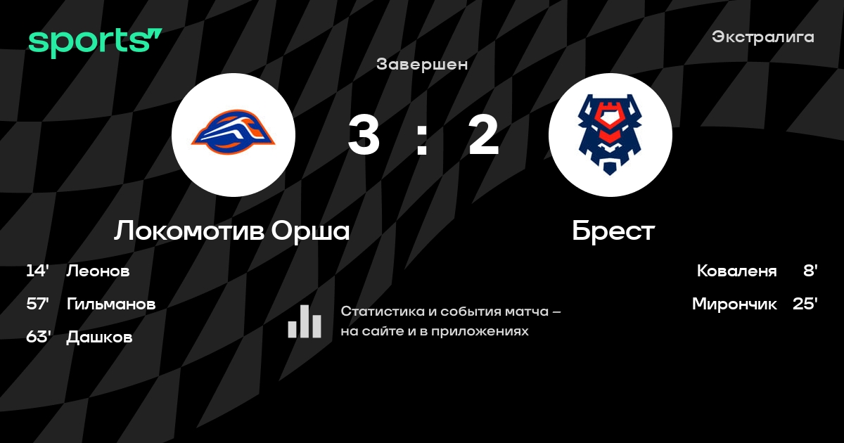 В прошедшем матче в рамках турнира Экстралига состоялась встреча команд Локомотив Орша - Брест в городе Орша (Беларусь) на стадионе Ледовая арена Орша (вместимость - 3500)