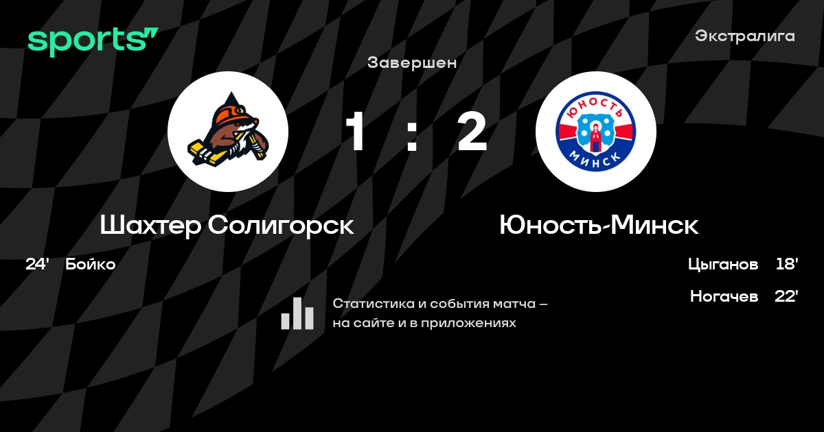 В прошедшем матче в рамках турнира Экстралига состоялась встреча команд Шахтер Солигорск - Юность-Минск в городе Солигорск (Беларусь) на стадионе Ледовый дворец спорта Солигорск (вместимость - 1800)