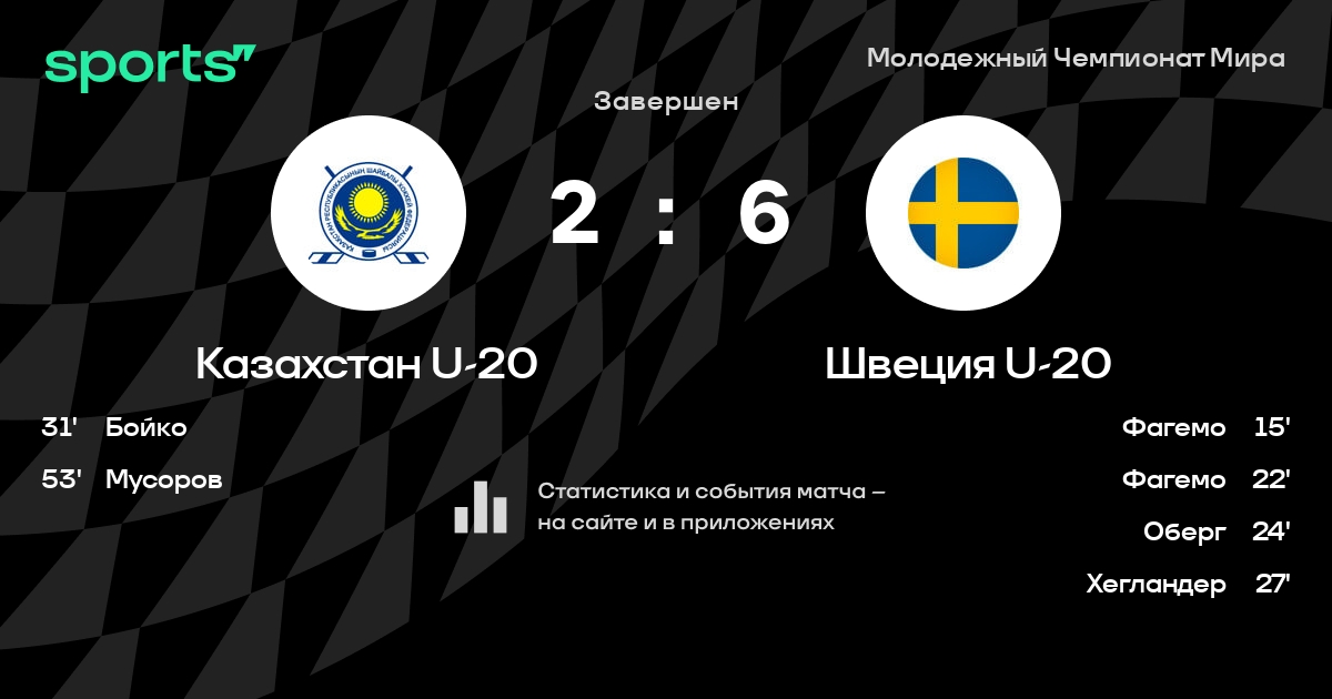 В прошедшем матче в рамках турнира Молодежный Чемпионат Мира (Групповая стадия) состоялась встреча команд Казахстан U-20 - Швеция U-20 в городе Тршинец (Чехия) на стадионе Werk Arena (вместимость - 5400)