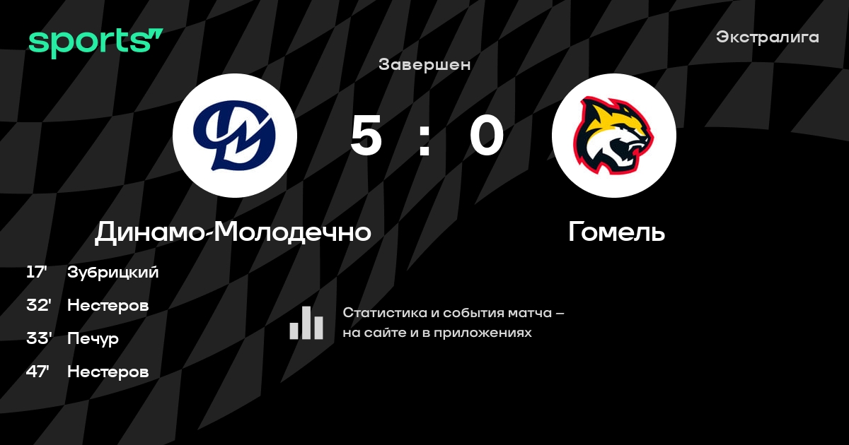 В прошедшем матче в рамках турнира Экстралига состоялась встреча команд Динамо-Молодечно - Гомель в городе Молодечно (Беларусь) на стадионе Ледовый дворец Молодечно (вместимость - 2000)