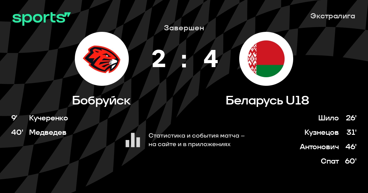 В прошедшем матче в рамках турнира Экстралига состоялась встреча команд Бобруйск - Беларусь U18 в городе Бобруйск (Беларусь) на стадионе Бобруйск-Арена (вместимость - 7191)