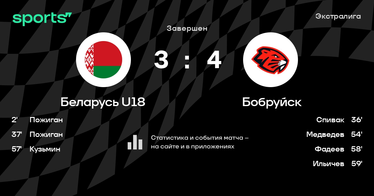 В прошедшем матче в рамках турнира Экстралига состоялась встреча команд Беларусь U18 - Бобруйск в городе Острошицкий Городок (Беларусь) на стадионе Ледовая арена Раубичи (вместимость - 120)