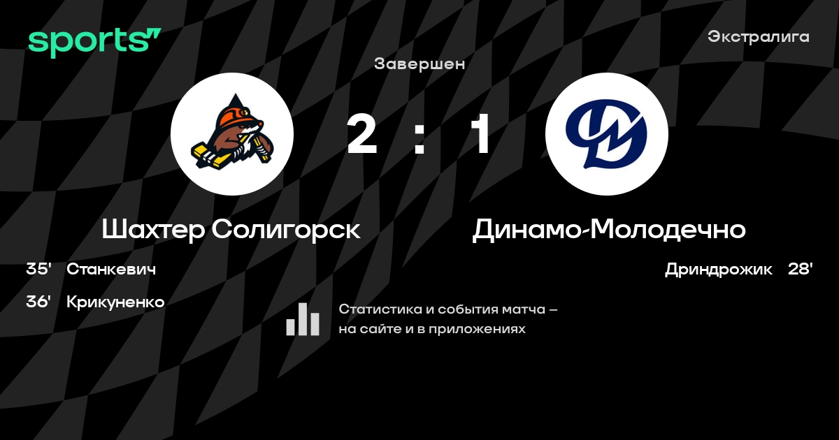 В прошедшем матче в рамках турнира Экстралига состоялась встреча команд Шахтер Солигорск - Динамо-Молодечно в городе Солигорск (Беларусь) на стадионе Ледовый дворец спорта Солигорск (вместимость - 1800)