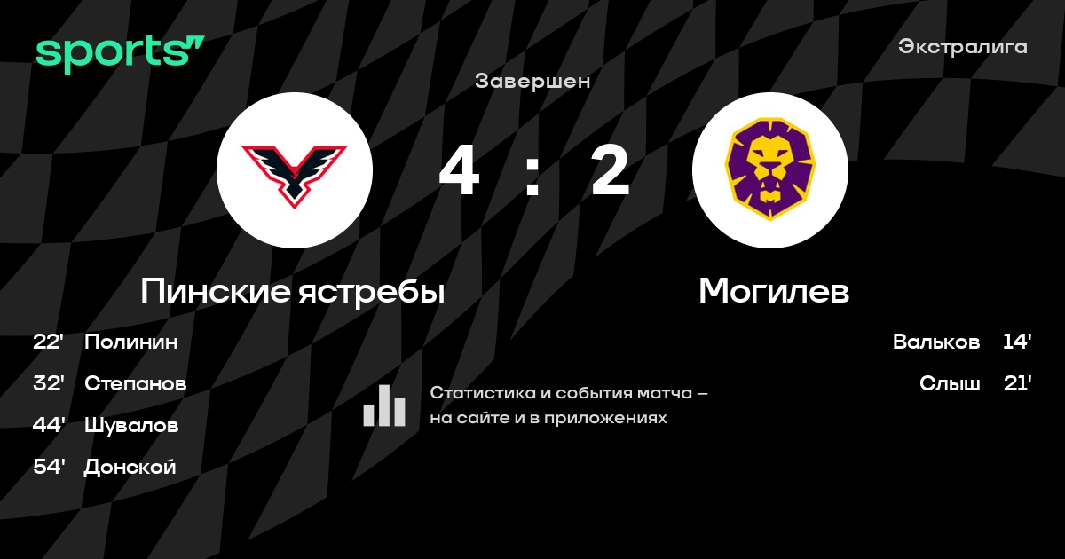 В прошедшем матче в рамках турнира Экстралига состоялась встреча команд Пинские ястребы - Могилев в городе Пинск (Беларусь) на стадионе Ледовый дворец спорта Пинск (вместимость - 598)