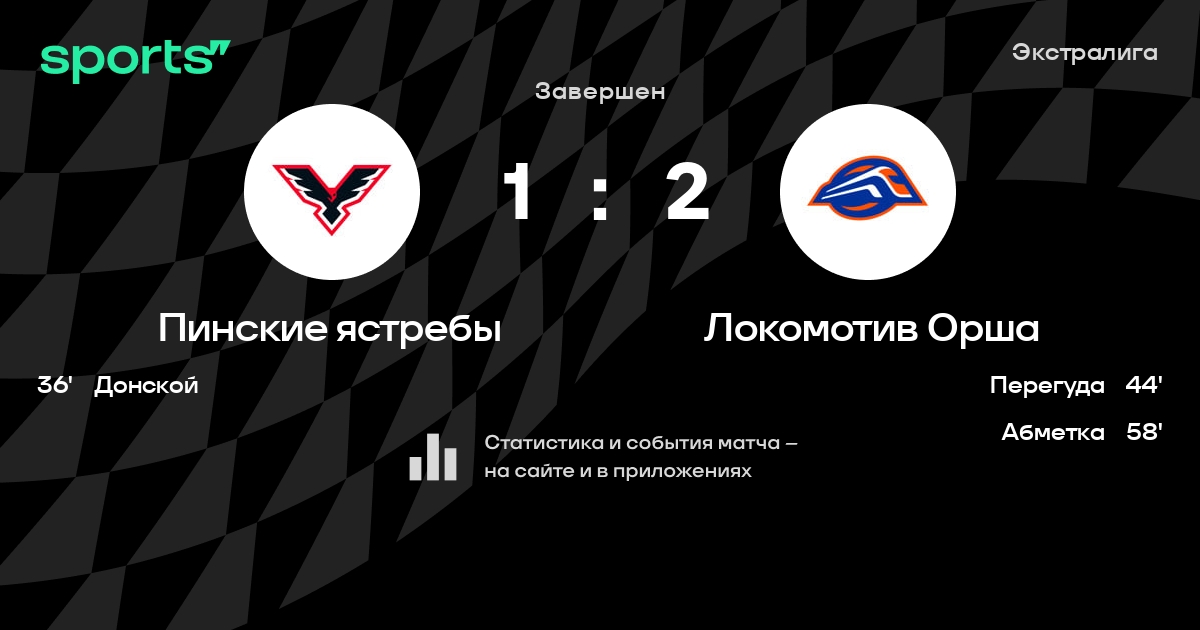 В прошедшем матче в рамках турнира Экстралига состоялась встреча команд Пинские ястребы - Локомотив Орша в городе Пинск (Беларусь) на стадионе Ледовый дворец спорта Пинск (вместимость - 598)
