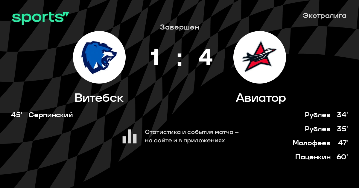 В прошедшем матче в рамках турнира Экстралига состоялась встреча команд Витебск - Авиатор в городе Витебск (Беларусь) на стадионе Витебский дворец спорта (вместимость - 2000)