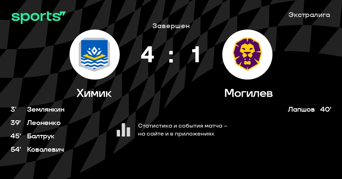 В прошедшем матче в рамках турнира Экстралига состоялась встреча команд Химик - Могилев в городе Новополоцк (Беларусь) на стадионе Дворец культуры и спорта (вместимость - 1200)
