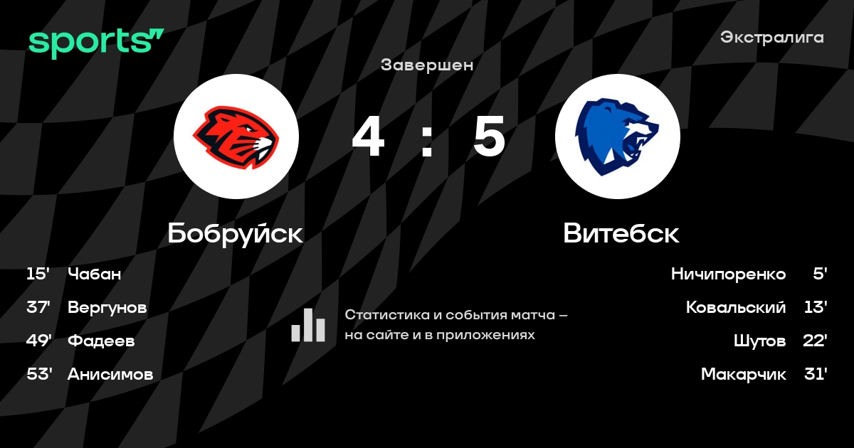 В прошедшем матче в рамках турнира Экстралига состоялась встреча команд Бобруйск - Витебск в городе Бобруйск (Беларусь) на стадионе Бобруйск-Арена (вместимость - 7191)