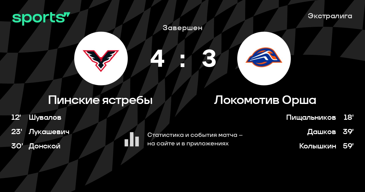 Как прошел матч, смотрите в текстовой трансляции Пинские ястребы - Локомотив Орша на Sports.ru