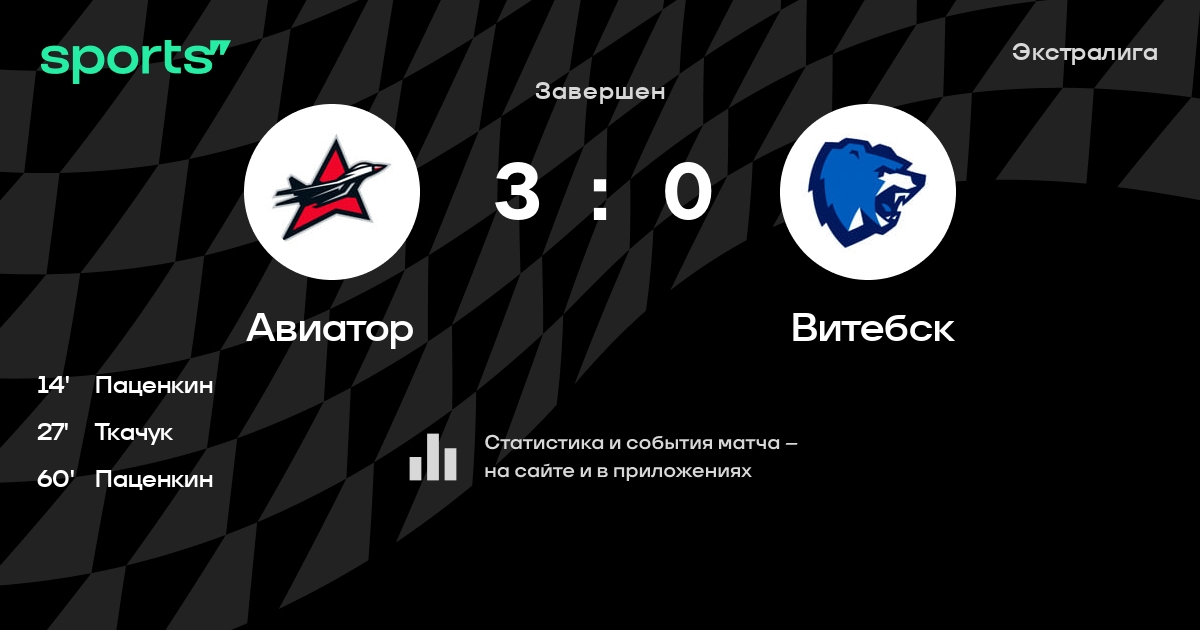 В прошедшем матче в рамках турнира Экстралига состоялась встреча команд Авиатор - Витебск в городе Барановичи (Беларусь) на стадионе Ледовый дворец спорта Барановичи (вместимость - 2100)